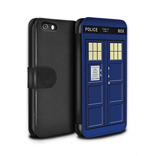 Stuff4 Phone Case Wallet for Apple iPhone 5/5S Tardis Phone Box Art Blue Design Flip Faux PU Leather