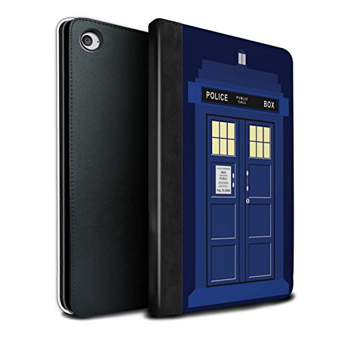 Stuff4 Tablet Case for Apple iPad Mini 4 Tardis Phone Box Art Blue Design Flip Faux Book PU Leather