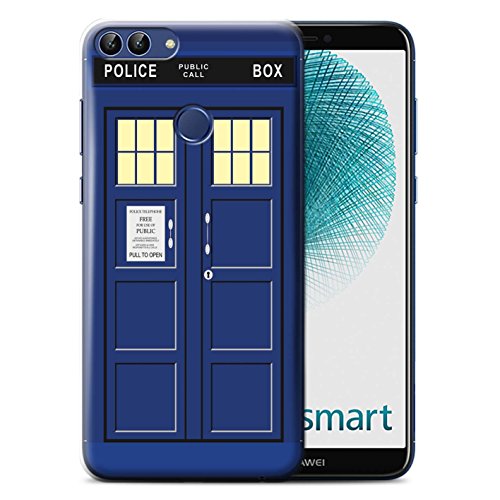 Stuff4 Phone Case for Huawei P Smart Tardis Phone Box Art Blue Design Transparent Clear Ultra Slim T