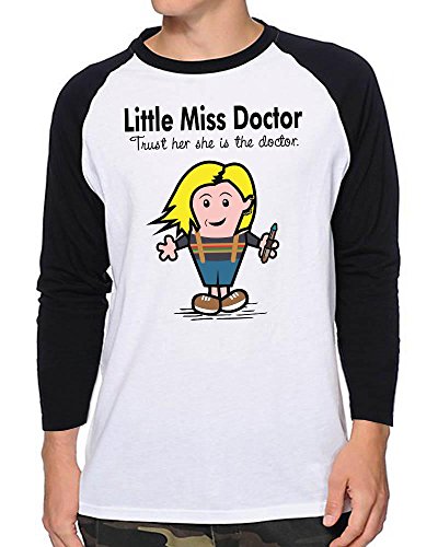 Funky NE Ltd Little Miss Doctor - Mr Men - 13th Time Lord - Baseball T-Shirt - 100% Cotton - Small t