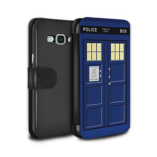 Stuff4 Phone Case Wallet for Samsung Galaxy J3 Tardis Phone Box Art Blue Design Flip Faux PU Leather