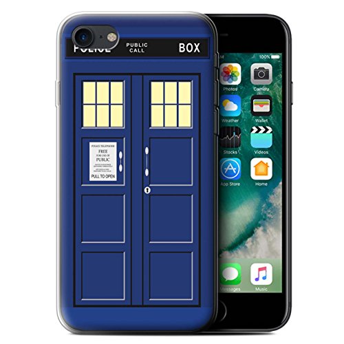 Stuff4 Phone Case for Apple iPhone 7 Tardis Phone Box Art Blue Design Transparent Clear Ultra Soft F