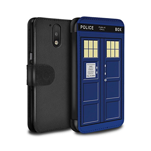 Stuff4 Phone Case Wallet for Motorola Moto G4 2016 Tardis Phone Box Art Blue Design Flip Faux PU Lea