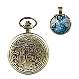 BOSHIYA Doctor Who Vintage Pocket Watches for Men, Quartz Pocket Watch with Bronze Case and Chain Re